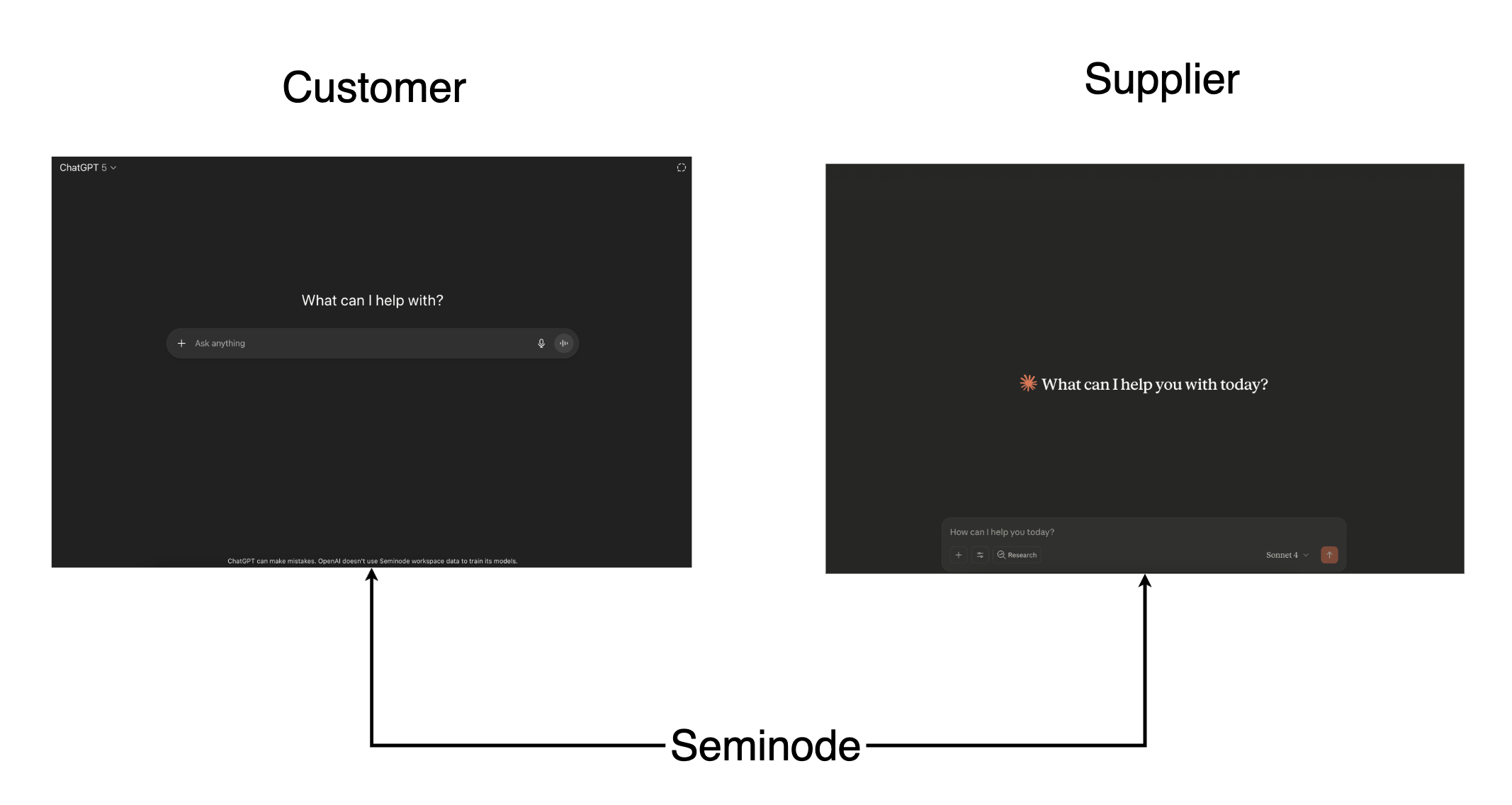Seminode introduces a bold new way for customers and suppliers to communicate with intelligence and speed. By linking AI chatboxes that support MCP to Seminode, we turn familiar chat interfaces into secure, structured data exchanges. This novel approach enables context-aware AI, effortless access to relevant data, and smarter, more autonomous collaboration across the supply network.